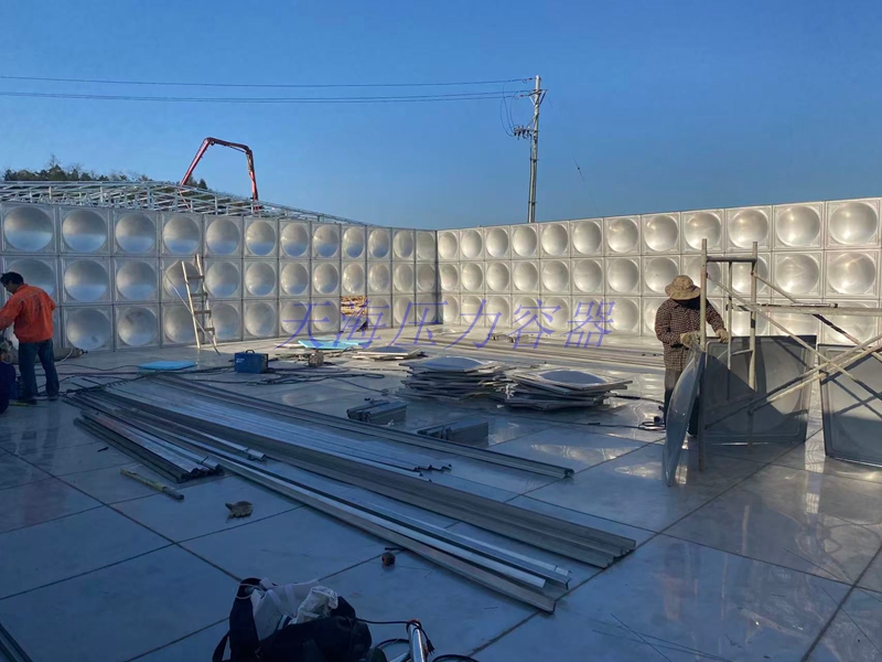天海压力容器不锈钢水箱施工现场