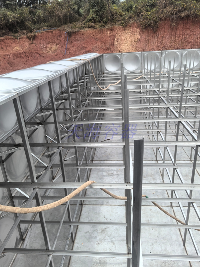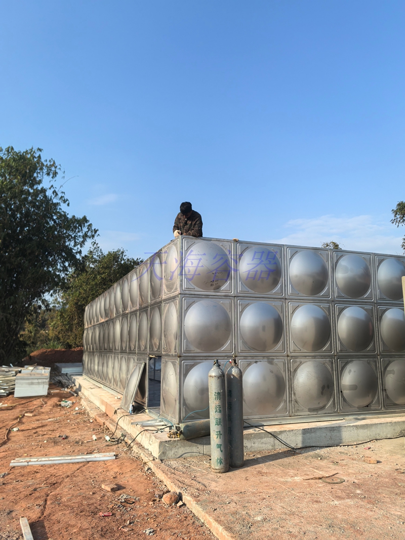 广东省清远市1000m³不锈钢水箱施工中。